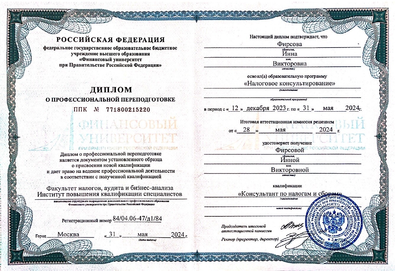 - имею два высших образования: техническое и экономическое, в том числе квалификацию «консультант по налогам и сборам»;