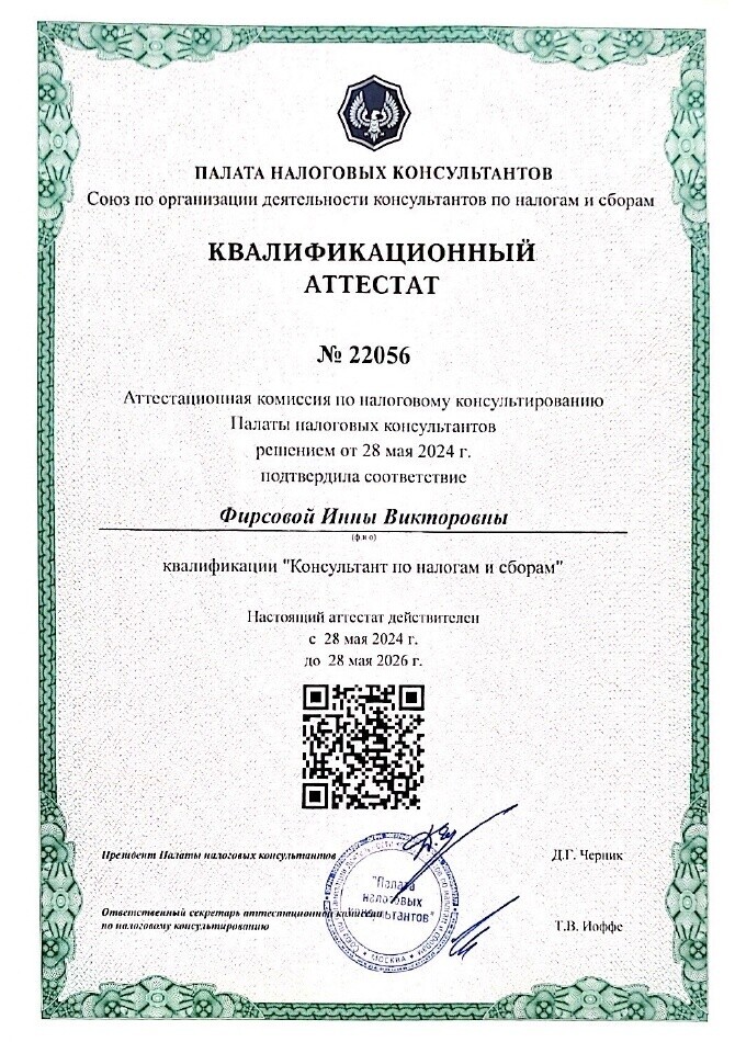 - являюсь членом Палаты налоговых консультантов;
